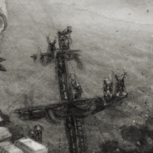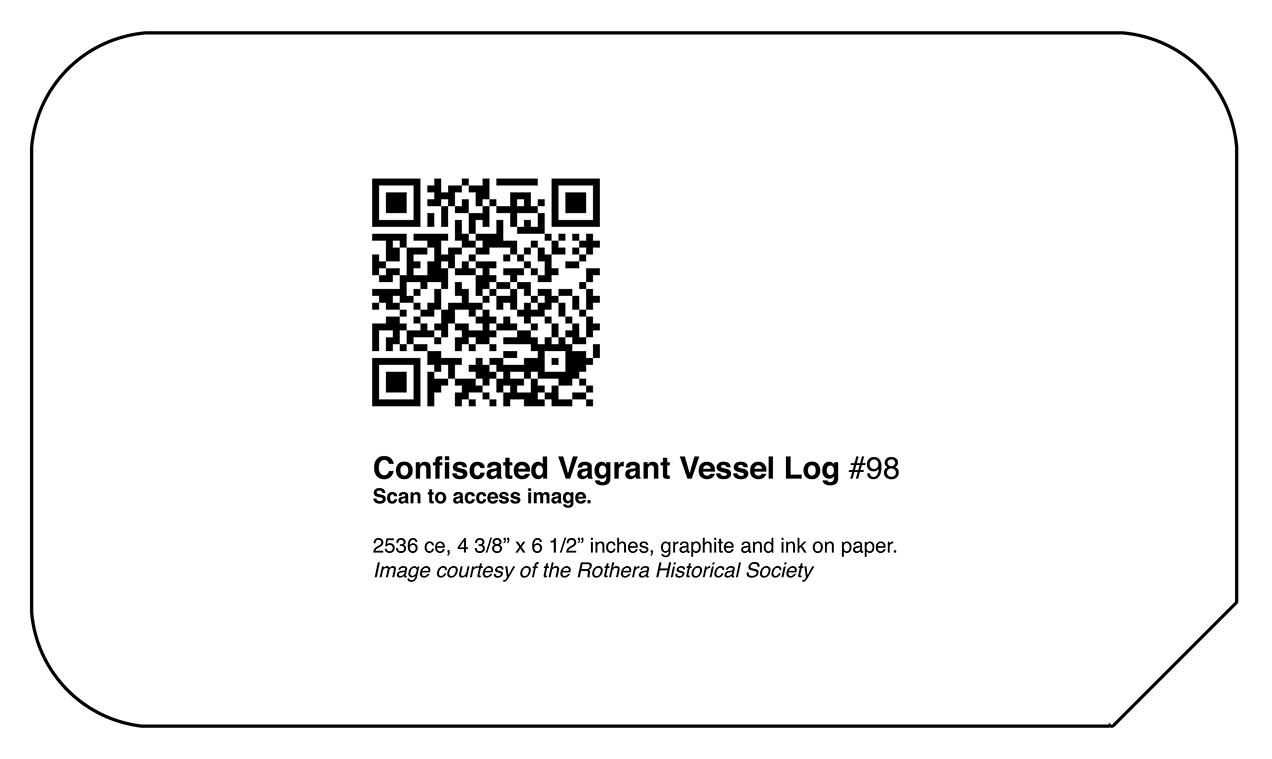 Confiscated Vagrant Vessel #98 Confiscated Vagrant Vessel Series, The Dreadnaught Saga. Confiscated Vagrant Vessel 98, 6 1/2″ x 4 3/8″ inches, graphite and ink on paper Image details & ancillary materials Related