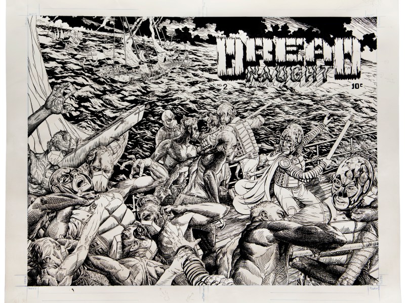 Inks for ‘Dread Naught’ #2 Comic Book Cover The Dreadnaught Saga. Inks for ‘Dread Naught’ #2 Comic Book Cover, 2018, 30″ x 22″ inches, acrylic, graphite and non-photo blue pencil on paper Image details & ancillary materials Related