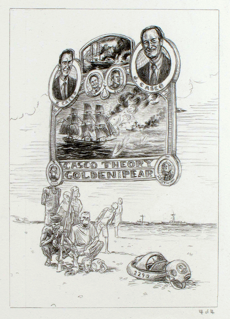 High Counselor Jonathan Casco’s Theory About the Loss of the Golden Pear The Dreadnaught Saga. High Counselor Jonathan Casco’s Theory About the Loss of the Golden Pear, 2010-2011, 22″ x 30″ inches, graphite on paper, private collection | installation view image details & Ancillary materials Related